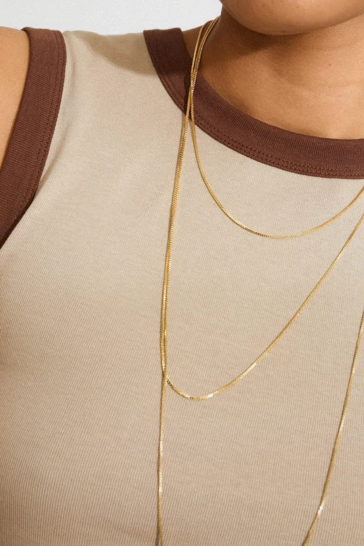 The Peri necklace is made up of a Singapore chain which is loosely twisted to create a delicate and elegant look. The simplicity of it makes it perfect for everyday and layers perfectly with your other favourite Pilgrim necklaces.